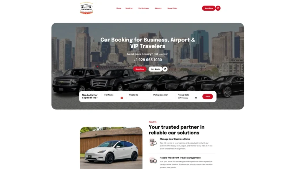 WordPress development for effortless car service bookings, offering a user-friendly design and smooth functionality for business, airport, and VIP travelers